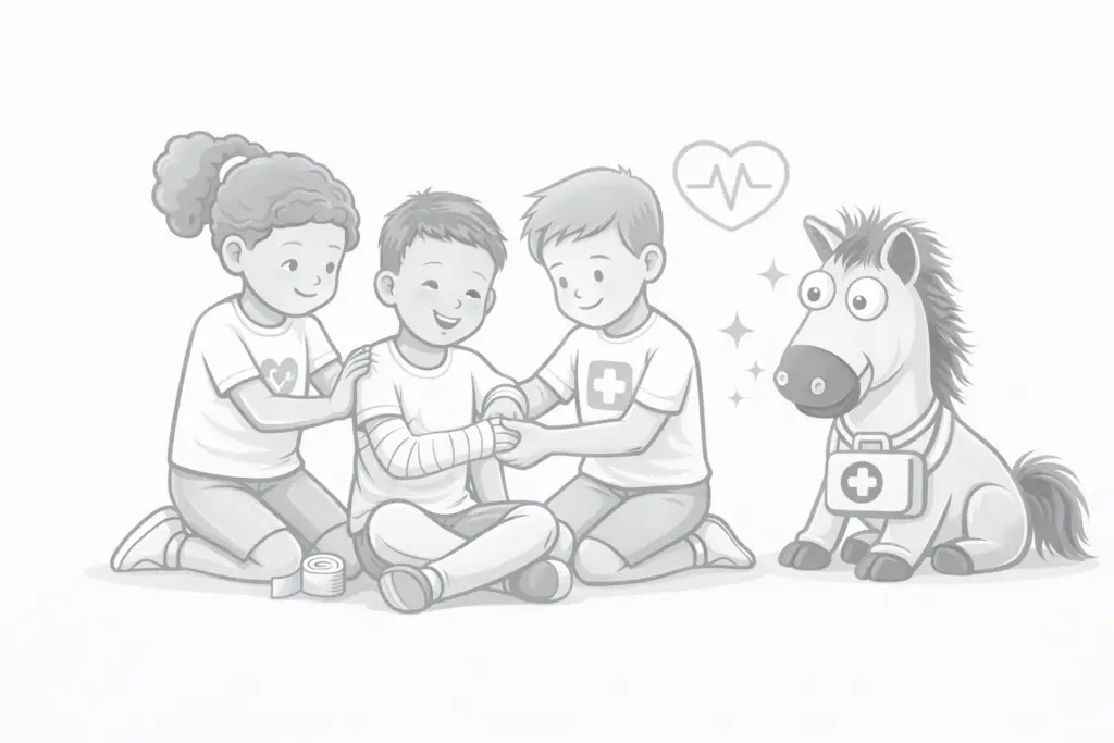 - Altersgerechte Vermittlung grundlegender Notfallmaßnahmen / Notruf, Verbände, Seitenlage, Reanimation